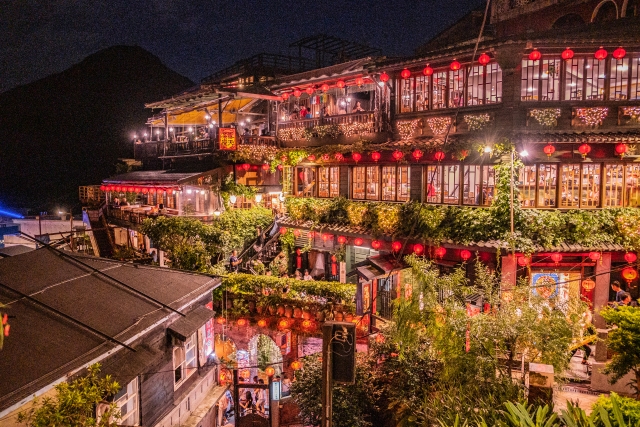 かつて金鉱の町として栄えた九份は、現在では独特のレトロな雰囲気と美しい夜景で多くの観光客を魅了しています。九份の中心地である「九份老街」は、狭い路地に赤い提灯が連なり、まるで時間が止まったかのような雰囲気を醸し出しています。