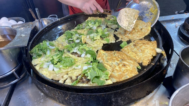 一般的な牡蠣オムレツとは異なり、士林夜市には独特の調理法を持つ店があります。牡蠣の風味を最大限に引き出すため、特殊な調理器具を使用し、カリカリの食感を実現しています。