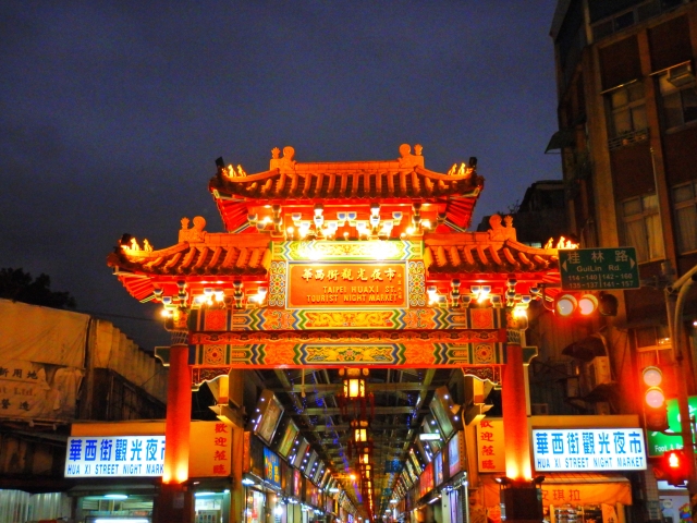- 通化街から臨江街への入り口に「臨江街觀光夜市」と書かれたゲートがあり、夜市の入口を示している