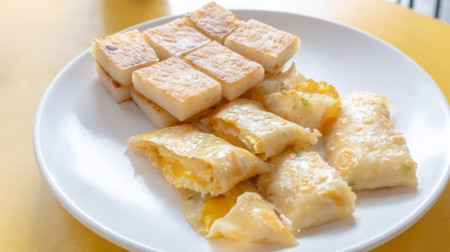 朝食では、「蛋餅(ダンビン)」という台湾風クレープや、「豆漿(ドウジャン)」という豆乳、「油條(ヨウティアオ)」という揚げパンなどを楽しむことができます。
